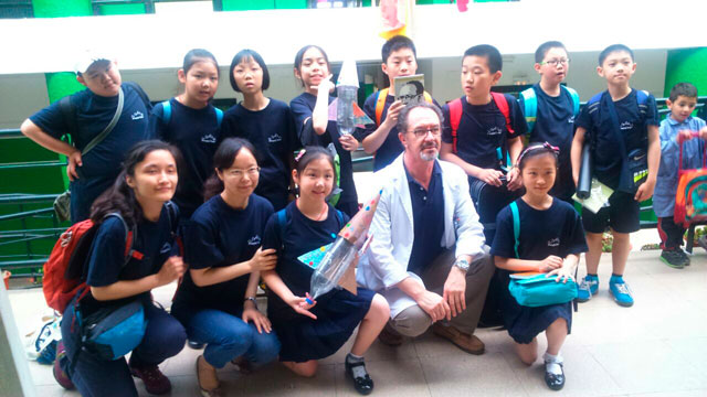 Alumnos del colegio de China, niños y niñas de unos 10 años de edad participaron en la Carrera Solidaria que realiza el Federico Muelas cada año. Mantuvieron una mesa redonda con el alumnado de 5º para responder a aquellas cuestiones que más interesan a los alumnos. Participaron en un taller de Cohetes, siendo dirigidos por el alumnado del Federico mediante equipos de trabajo mixtos, de los dos centros. Concluyendo la jornada con la actuación teatral del grupo de alumnos del Penglai, que ofrecieron una adaptación musical de la obra Aladino, en inglés, para todo el alumnado del Federico Muelas. Toda una jornada de comunión entre los dos colegios y nuestras culturas.