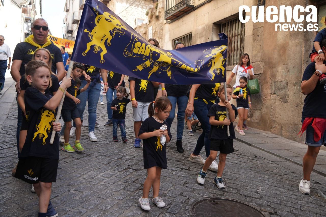 La mañana de este sábado, en plena tercera jornada de las fiestas de San Mateo, Cuenca se ha volcado con los más pequeños. El día arrancaba en el Barrio del Castillo con el concurso infantil de dibujo, al que siguió el desfile de peñas infantiles, que reunió a cerca de un centenar de niños y niñas vestidos con las camisetas de sus respectivas peñas.