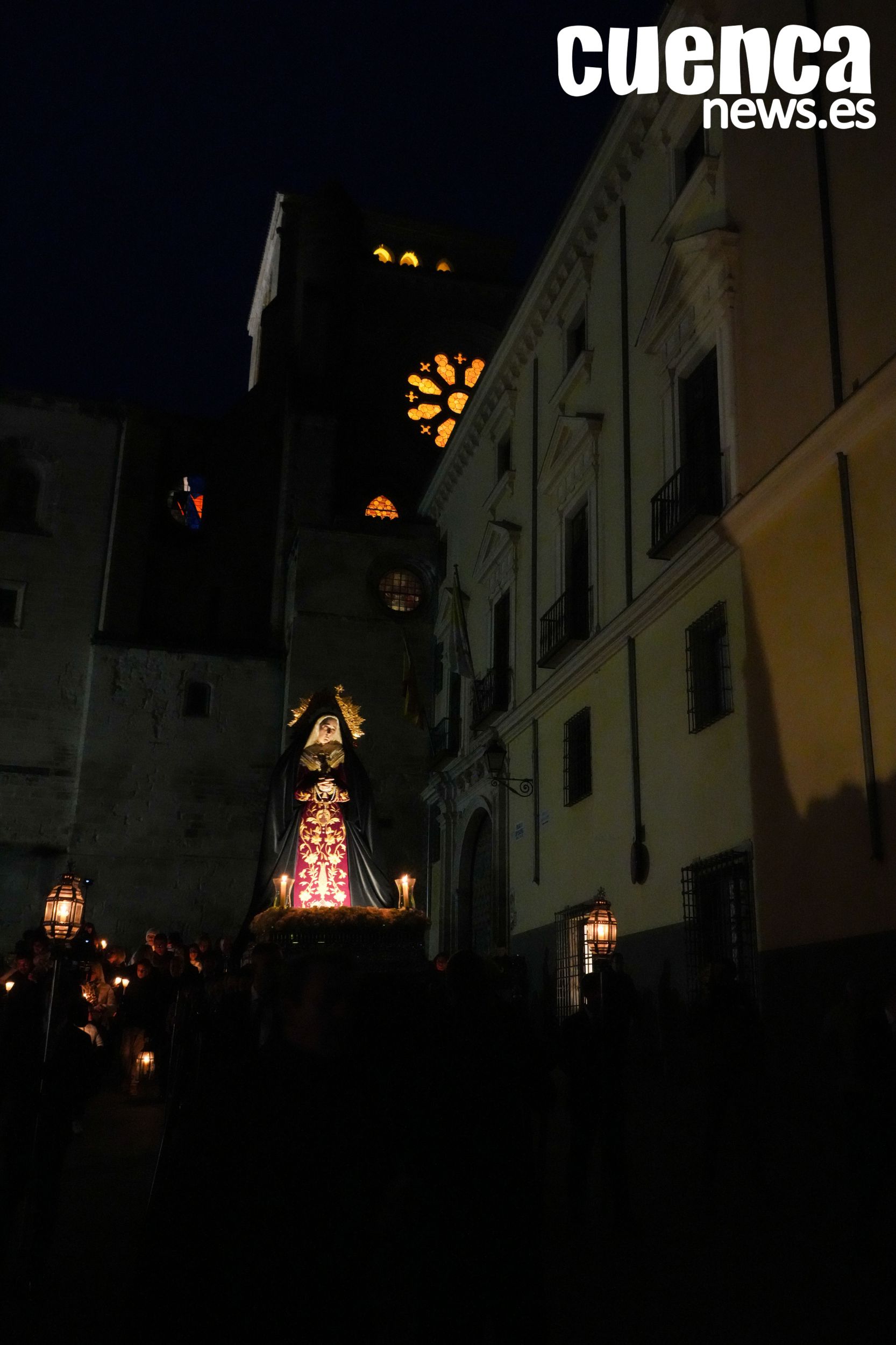 El casco antiguo de Cuenca vivió en la tarde de este sábado un emotivo Rosario Vespertino presidido por la imagen de Nuestra Señora de los Dolores, una cita que permitió recuperar el espíritu de la antigua procesión del Sábado Santo. Numerosos hermanos y fieles acompañaron el rezo del rosario por las calles medievales de la ciudad en un acto cargado de recogimiento con motivo del décimo aniversario fundacional de la hermandad. (43 visitas)Noticias relacionadas