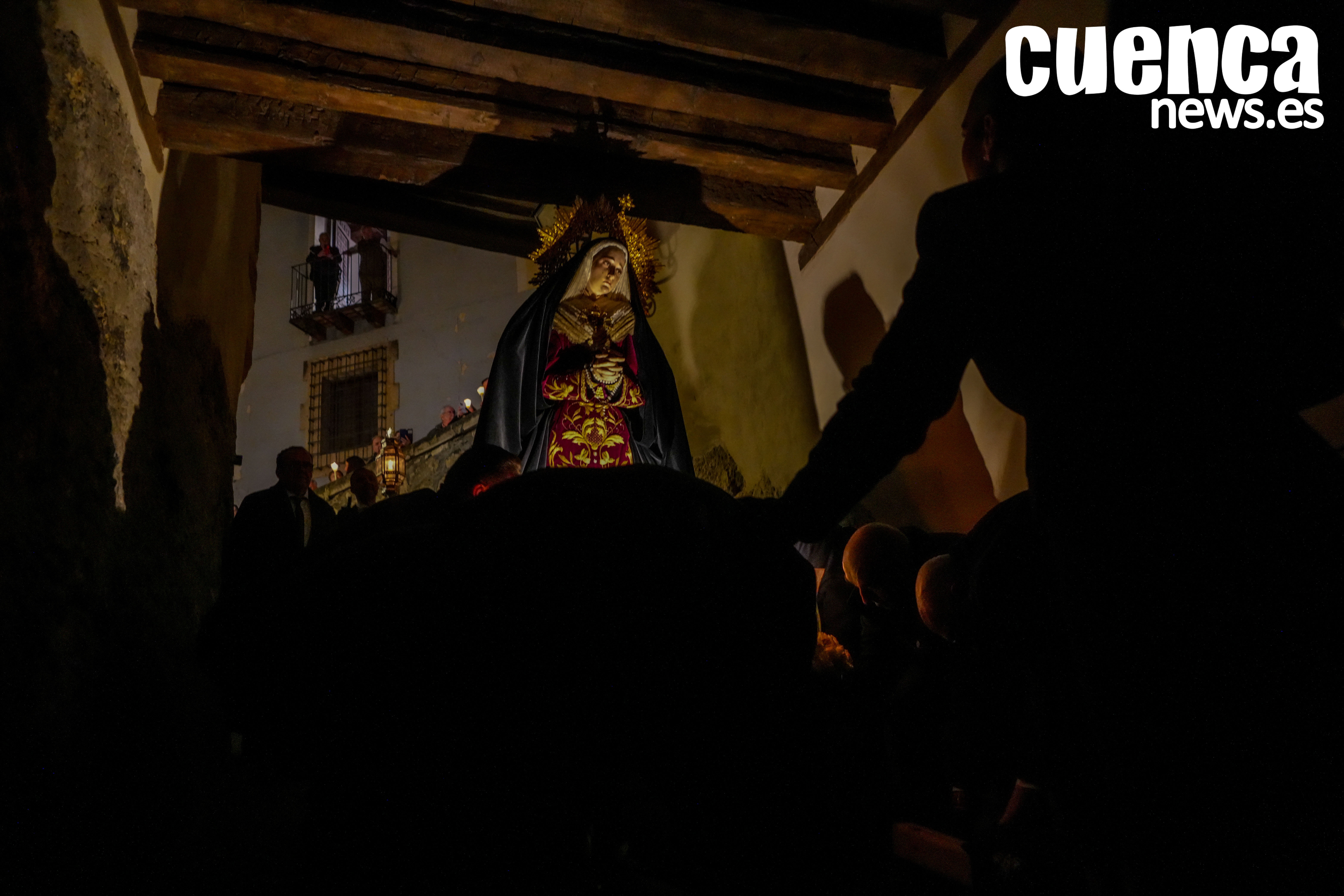 El casco antiguo de Cuenca vivió en la tarde de este sábado un emotivo Rosario Vespertino presidido por la imagen de Nuestra Señora de los Dolores, una cita que permitió recuperar el espíritu de la antigua procesión del Sábado Santo. Numerosos hermanos y fieles acompañaron el rezo del rosario por las calles medievales de la ciudad en un acto cargado de recogimiento con motivo del décimo aniversario fundacional de la hermandad. (53 visitas)Noticias relacionadas