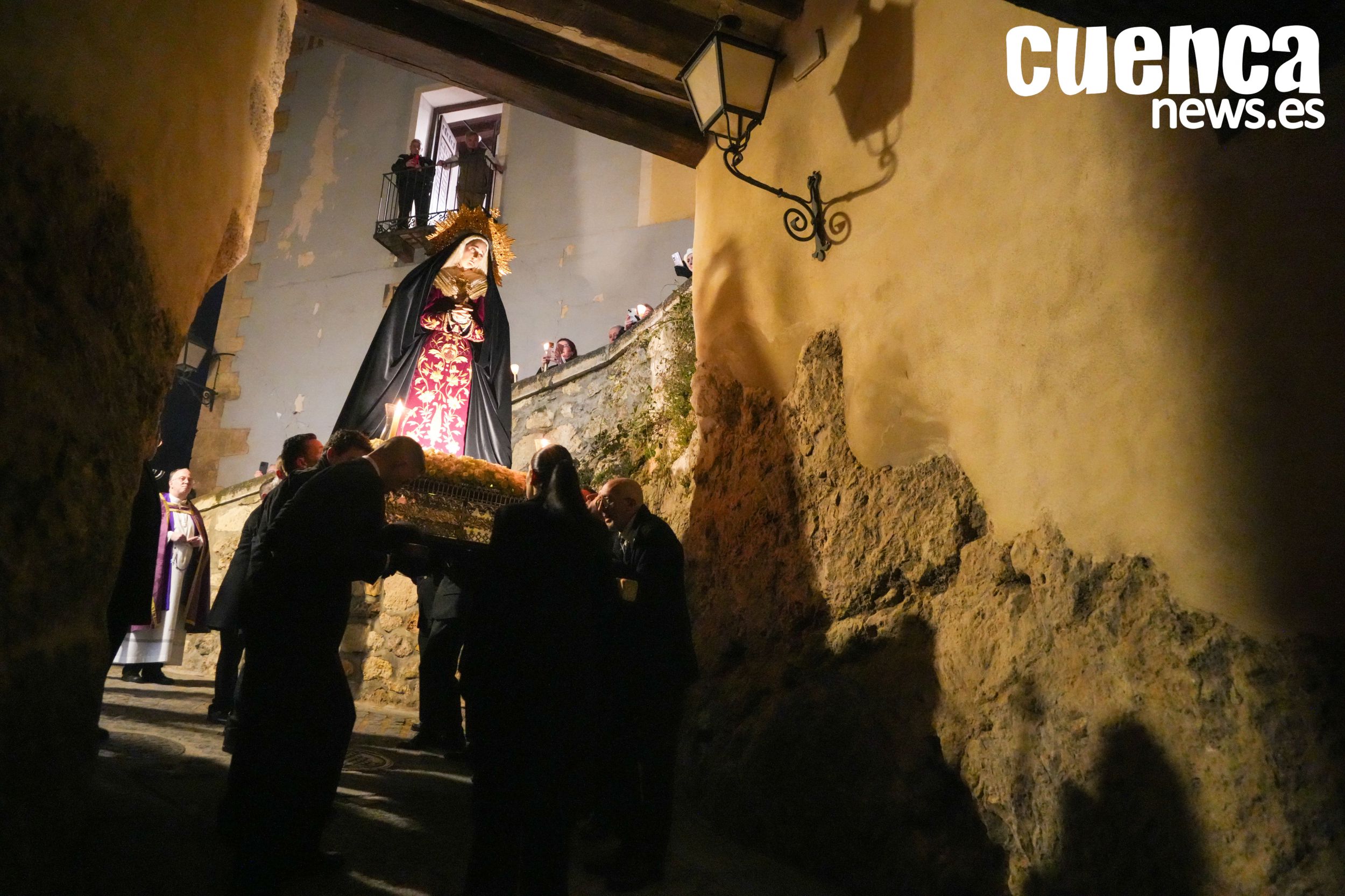 El casco antiguo de Cuenca vivió en la tarde de este sábado un emotivo Rosario Vespertino presidido por la imagen de Nuestra Señora de los Dolores, una cita que permitió recuperar el espíritu de la antigua procesión del Sábado Santo. Numerosos hermanos y fieles acompañaron el rezo del rosario por las calles medievales de la ciudad en un acto cargado de recogimiento con motivo del décimo aniversario fundacional de la hermandad. (54 visitas)Noticias relacionadas