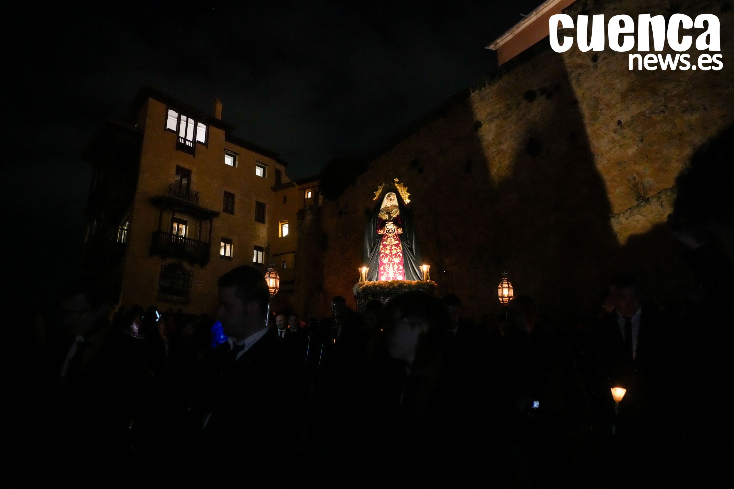 El casco antiguo de Cuenca vivió en la tarde de este sábado un emotivo Rosario Vespertino presidido por la imagen de Nuestra Señora de los Dolores, una cita que permitió recuperar el espíritu de la antigua procesión del Sábado Santo. Numerosos hermanos y fieles acompañaron el rezo del rosario por las calles medievales de la ciudad en un acto cargado de recogimiento con motivo del décimo aniversario fundacional de la hermandad. (58 visitas)Noticias relacionadas