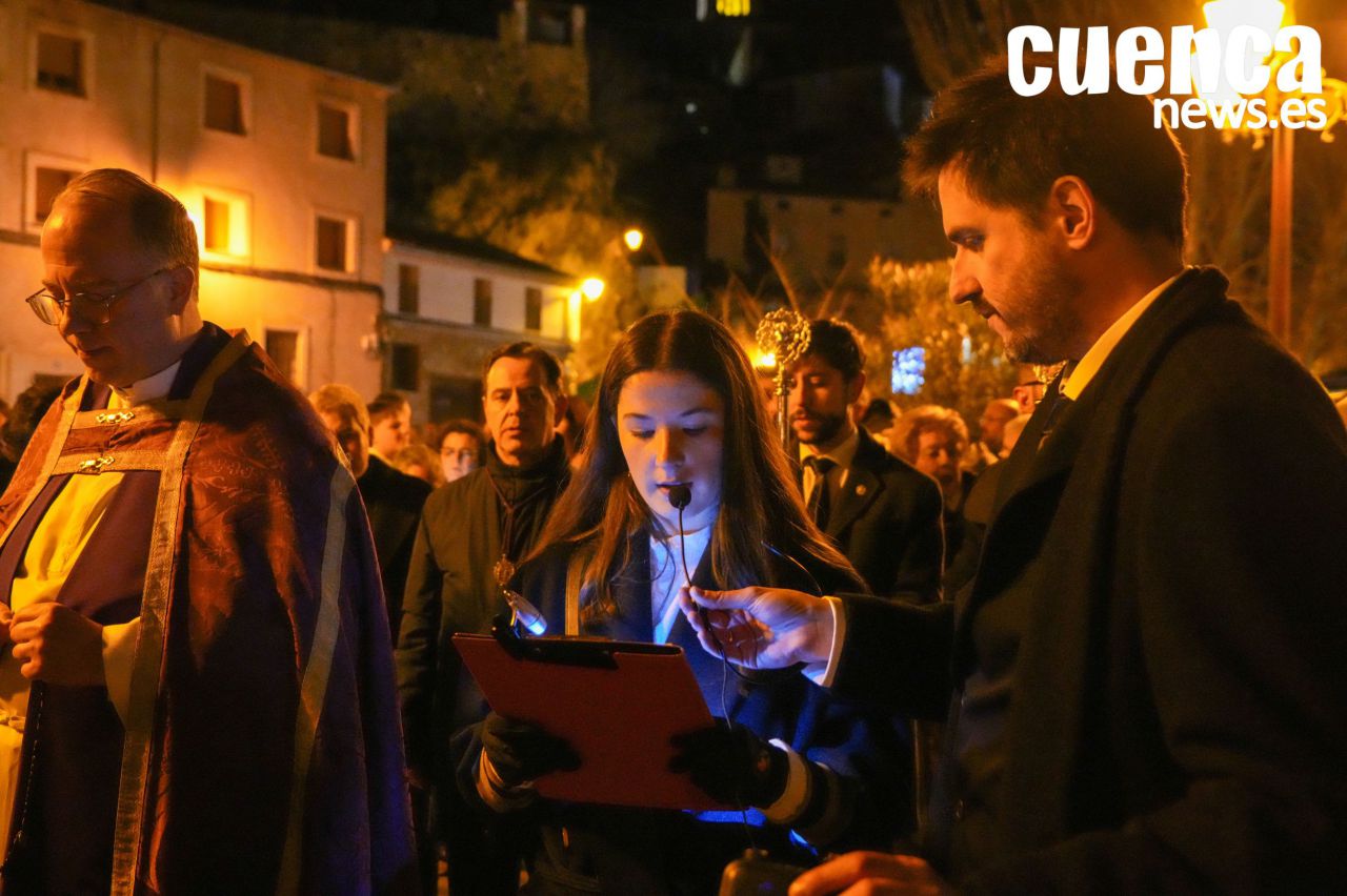 El casco antiguo de Cuenca vivió en la tarde de este sábado un emotivo Rosario Vespertino presidido por la imagen de Nuestra Señora de los Dolores, una cita que permitió recuperar el espíritu de la antigua procesión del Sábado Santo. Numerosos hermanos y fieles acompañaron el rezo del rosario por las calles medievales de la ciudad en un acto cargado de recogimiento con motivo del décimo aniversario fundacional de la hermandad. (152 visitas)Noticias relacionadas