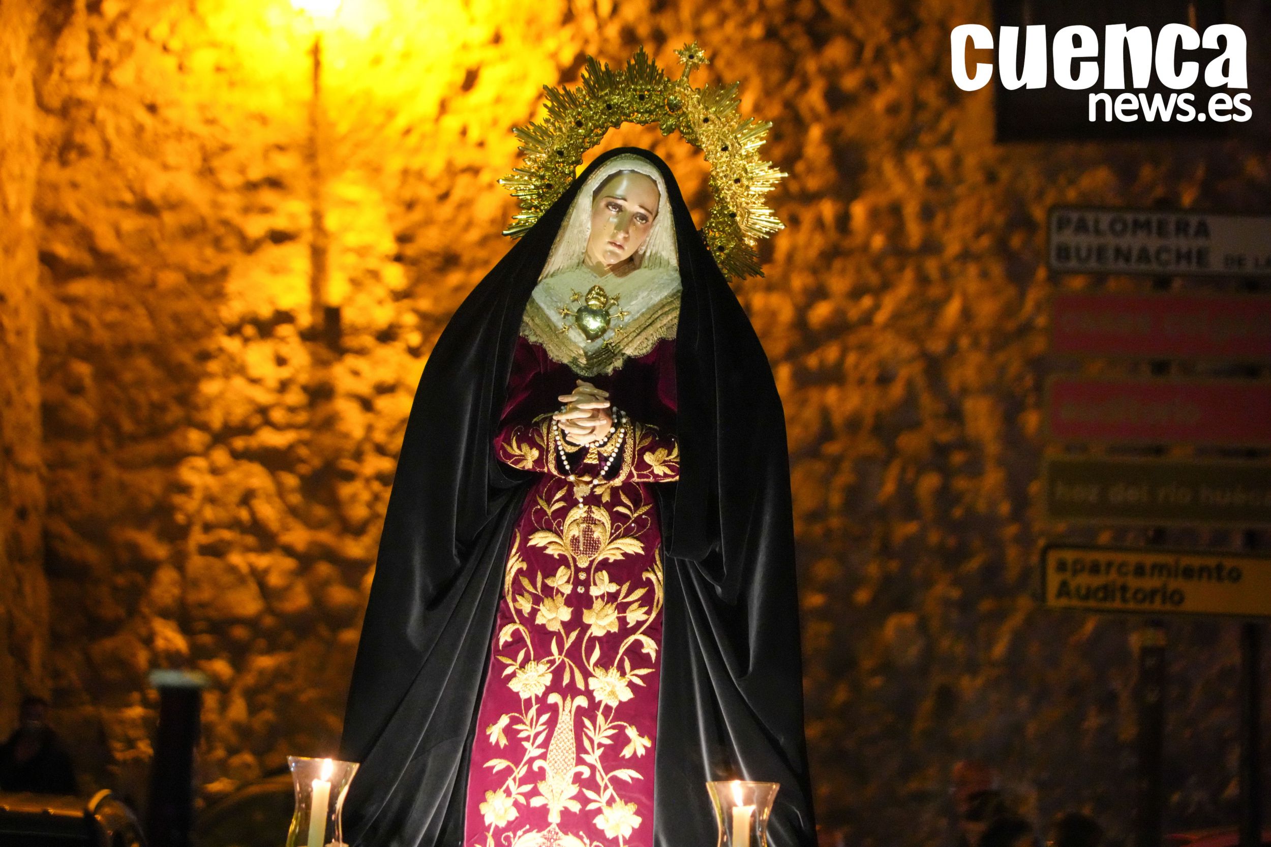 El casco antiguo de Cuenca vivió en la tarde de este sábado un emotivo Rosario Vespertino presidido por la imagen de Nuestra Señora de los Dolores, una cita que permitió recuperar el espíritu de la antigua procesión del Sábado Santo. Numerosos hermanos y fieles acompañaron el rezo del rosario por las calles medievales de la ciudad en un acto cargado de recogimiento con motivo del décimo aniversario fundacional de la hermandad. (164 visitas)Noticias relacionadas
