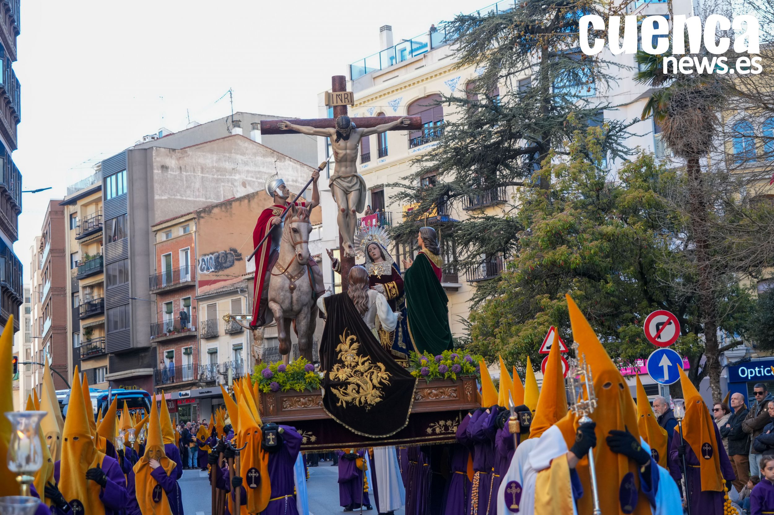 La procesión del mediodía del Viernes Santo en Cuenca transcurrió con gran brillantez, favorecida por un tiempo excepcional que permitió lucir cada detalle del cortejo. La alta participación nazarena en todas las hermandades y el estricto cumplimiento de los horarios marcaron un desfile ordenado y solemne, que recorrió las calles del casco histórico dejando imágenes de gran belleza y emoción en una jornada clave de la Semana Santa conquense.
