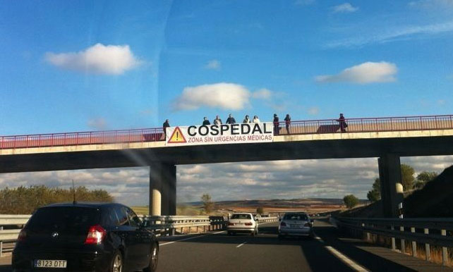 "Cospedal: zona sin urgencias médicas”. Los conductores que este miércoles iniciaban  su puente de Todos los Santos, se han topado con  este impactante mensaje en diferentes tramos de la A-3 a su paso por  la provincia de Cuenca.