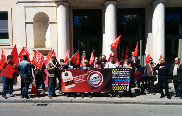 Se ha procedido a realizar una concentración en la plaza de España para reivindicar, según Pedro Lucas, secretario general de CCOO Cuenca, “el derecho que tienen los trabajadores a no perder su vida o su salud por causa del trabajo, y llamar la atención sobre el aumento de accidentes de trabajo y enfermedades profesionales que estamos viendo, debido a una mayor dejadez por parte de algunos empresarios, que han entendido que es necesario reducir los derechos a la seguridad en el trabajo en esta de época de crisis”.
