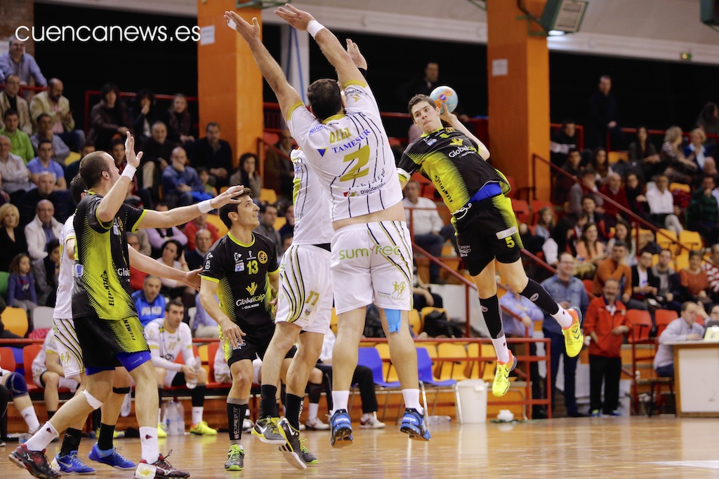 34 (14+20).- Globalcaja Ciudad Encantada: Oliva; Álvaro Pérez-Ortiz (7, 3p), Mendoza, Renaud (6), Dzokic, Frade (4), Sifre (5), siete inicial, De Hita (p), Nacho Moya (1), Lipovina (8), Viscovich y Milosevic (3).