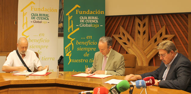 Carlos de la Sierra, presidente de la Fundación Caja Rural de Cuenca de Globalcaja y Arturo Ballesteros, presidente del Centro de Estudios Fundación Sánchez Vera, han suscrito este importante acuerdo en apoyo de la revitalización de la Huerta del Júcar.