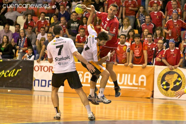 Pero a pesar de este bajón físico, los conquenses no dejaban escapar a su rival que se mostraba bastante arrollador como bien acredita el 24-28 del lateral serbio Stankovic, cuando apenas restaban cinco minutos para la conclusión.