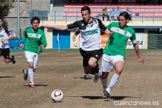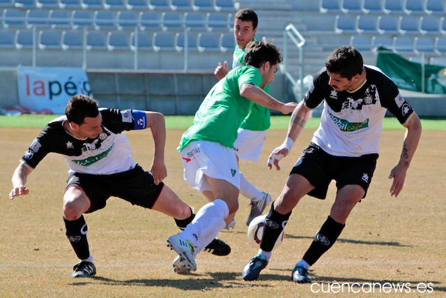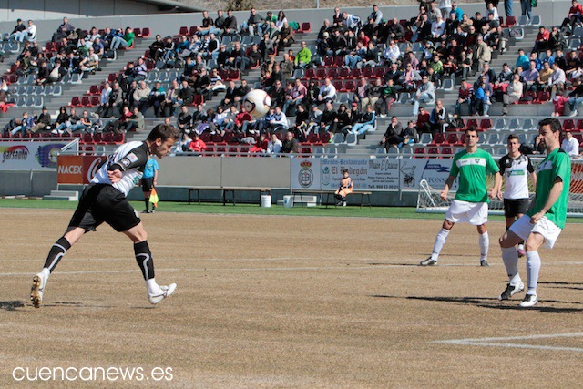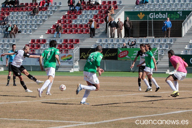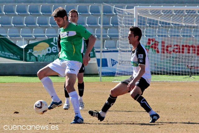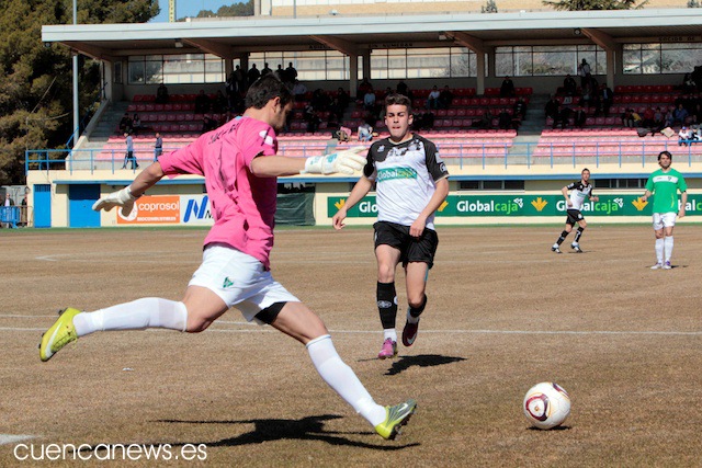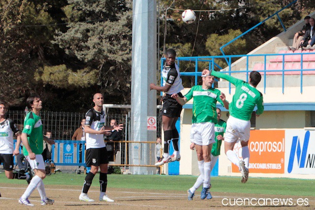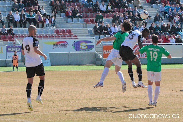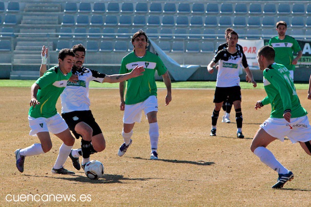 En los primeros instantes del partido, los conquense comenzaron mucho mejor que un rival que no se encontraba nada cómodo sobre el césped de La Fuensanta, abusando en exceso de los balones largos que buscaban una y otra vez a su referente ofensivo, David Sanz.