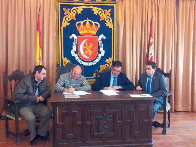 El presidente de la Diputación Provincial de Cuenca y presidente de la Fundación Antonio Pérez, Benjamín Prieto, y el alcalde de Huete, Fernando Romero, han rubricado el convenio de cesión que permitirá que fondos fotográficos de la FAP, compuesto por obras de artistas de primera línea, puedan ser exhibidos en el futuro Museo de la Fotografía de Huete.