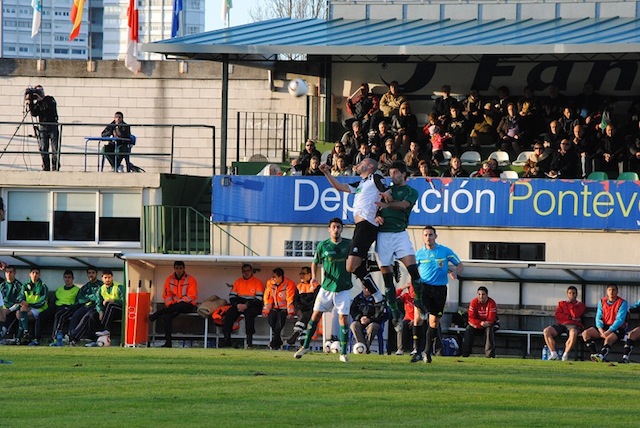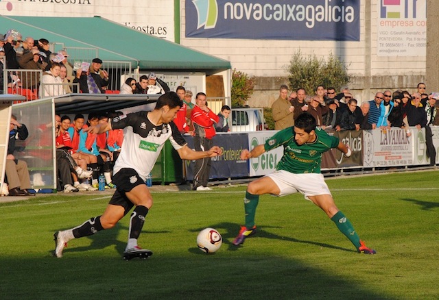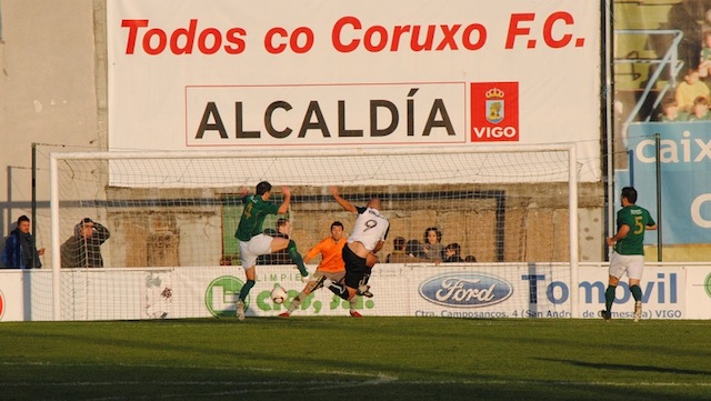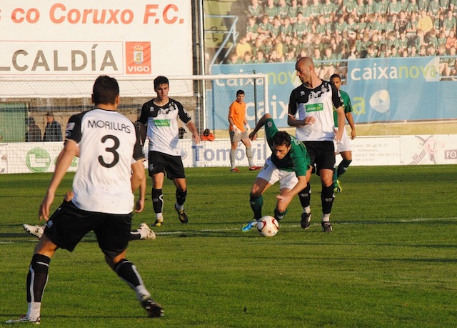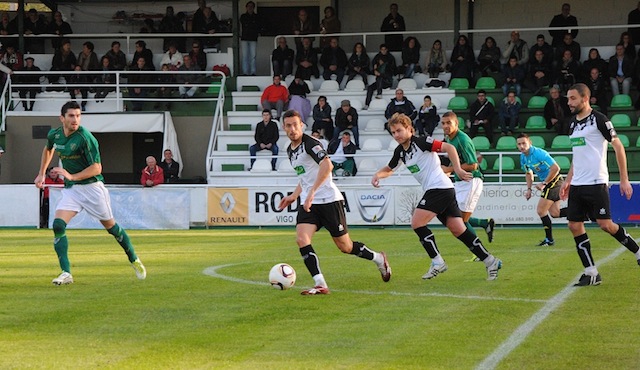 Se tendría que llegar al minuto veinte para ver la primera jugada clara en el área visitante en un balón sin peligro alguno que entre Caballero y que la defensa no acertaba en el despeje y el balón terminaba con un centro de Marcos Álvarez que no encontró un rematador, paseándose el balón por el área. Tres minutos más tarde el propio Marcos Álvarez, en jugada personal y tras coger verticalidad cara a portería engancha un potente disparo que Caballero despejaba con apuros. El equipo vigués ya fue prodigándose algo más en ataque, y en esta ocasión era Óscar Fondevila el que ponía a prueba al portero blanquinegro y una vez más Caballero daba cumplida respuesta tras felina intervención.