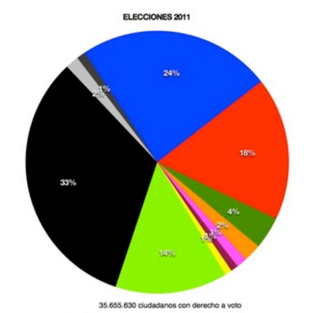 Lo primero sería analizar quién integra esa gran masa de indecisos. Ciertamente es difícil que sean potenciales votantes del PP. Su electorado está decidido, es fiel y todo el trasvase que podría llegar desde el PSOE, ha llegado ya. Parece que los indecisos son los tradicionales abstencionistas a los que se ha sumado una marea inmensa de desencantados del PSOE. Esa masa es, como bien analiza Blanco, mayoritariamente progresista, no quieren que gobierne el PP, pero tampoco quieren que gobierne el PSOE que está llevando a cabo políticas conservadoras, a estas alturas, la mayoría ve pocas diferencias reales entre ambos partidos y se siente desencantada. El espíritu de los indignados del 15 M encarna a esa multitud y quien haya escuchado sus lemas saben que no quieren al PP ni al PSOE. Es pues esta una masa atenazada por el bipartidismo que piensa que no hay otras opciones, pero su número es tan elevado que, si no se dejan atraer masivamente por la abstención pueden hacer que otros grupos den la sorpresa en estas elecciones ¿Qué opciones les quedan a estos votantes en busca de un partido al que votar?