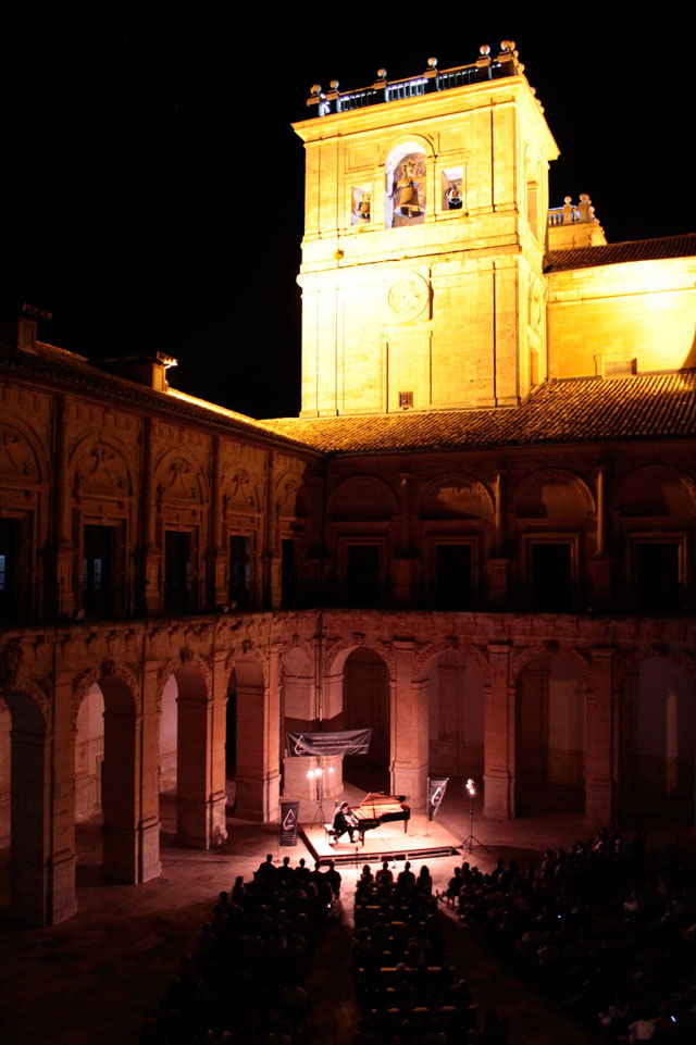 El pianista Mario Mora realizó anoche el segundo concierto enmarcado dentro del Festival Internacional de Música Almonacid del Marquesado, que tuvo lugar en el claustro del Monasterio de Uclés. Tras el concierto inaugural el pasado sábado con lleno absoluto, el público volvió a agotar las 500 butacas que se ofrecieron en este magnífico recital de piano.