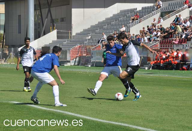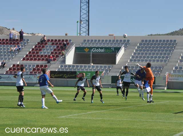 Según se sucedían los minutos el centro del campo del Conquense era el que marcaba el tempo del partido y buscaban una y otra vez las internadas por banda de Jorgito y Quique Aragón, que se marchaban con facilidad de sus marcadores pero veían con los centrales rivales estaba acertados en el despeje.