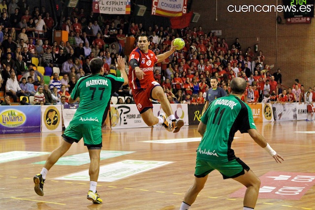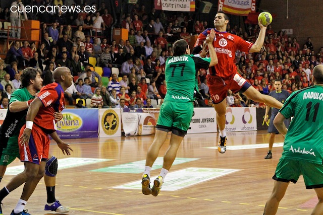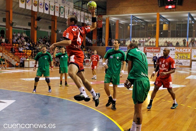 El técnico Paco Castillo veía como se le comenzaba a escapar el partido y por ello daba entrada Espigol y Savenco, para intentar dotar al ataque de una mayor pegada, peor ni aun así los conquense seguían a lo suyo y continuaban mostrándose muy seguros en defensa y seguían jugando a la contra para disfrute de la afición que veían como al descanso el partido estaba prácticamente sentenciado gracias a los tantos de Ángel Pérez y de un Paván que mostraba una leve mejoría con respecto a anteriores jornadas. Por todo ello el resultado al finalizar la primera mitad sería de 15-9.