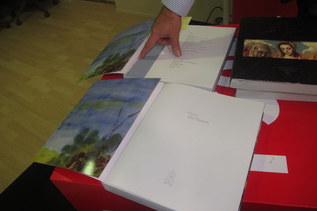 Fernando Mora ha demostrado esta mañana que en La Cerámica española y Don Quijote faltan las páginas correspondientes a los patrocinadores, a los agradecimientos a personas e instituciones que participaron en la confección del libro y al prólogo del anterior presidente de la Junta de Comunidades, José María Barreda. Del segundo libro se han arrancado las páginas que corresponden a los patrocinadores, el índice y los prólogos del ex presidente de la Junta y de la ex ministra de Cultura, Carmen Calvo.