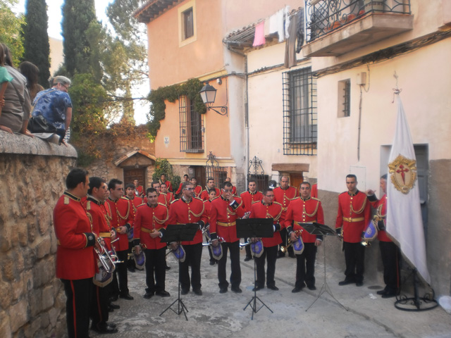 A continuación la Banda de Trompetas y Tambores de la Junta de Cofradías ha interpretado un memorable concierto, donde no han faltado las marchas como: “Soy el novio de la muerte”, “Himno Nacional” y la “Saeta”, retrocediendo a los allí presentes a la calle de Aguirre, en época de Semana Santa, dónde cada Miércoles Santo, se interpreta esta composición a la Hermandad de San Pedro, al finalizar la procesión del Silencio.