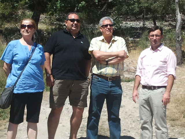 Ciudad Real, 25 de agosto de 2012. Una delegación de Izquierda Unida encabezada por su Coordinador regional Daniel Martínez y el Coordinador provincial de Ciudad Real, Miguel Ramírez, se han trasladado a la localidad de Navas de Estena, para comprobar el estado actual del municipio y los efectos del incendio que ha sufrido la zona y que ha afectado tanto a monte público dentro del Parque Nacional de Cabañeros como a propiedades privadas alrededor del municipio. En todo momento han estado acompañados por el Alcalde, Isidro Corsino, y la Teniente de Alcalde, Isabel Gutiérrez.