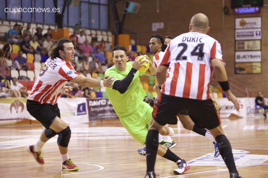 El conjunto local perdió dos balones en sus tres primeros ataques, lo que permitió al equipo castellano-manchego colocarse por delante en el marcador 0-2 y dominar hasta casi el primer cuarto de hora del encuentro, a pesar de encontrarse con un Álvaro Fernández inspirado que con sus intervenciones evitó que la ventaja foránea hubiera sido mayor.