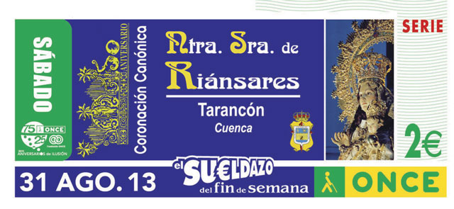 El 50 aniversario de la coronación de la Virgen de Riánsares, patrona de Tarancón, es el motivo del cupón de la ONCE del sábado 31 de agosto.