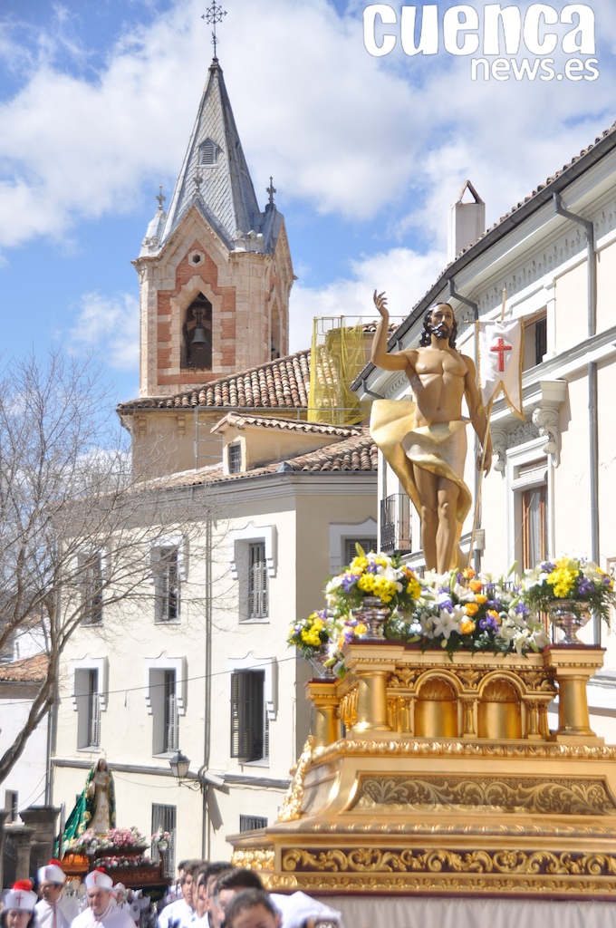La procesión arrancaba a las diez de la mañana en un día nublado y frio, los pasos procesionales de Ntro. Señor Jesucristo Resucitado y Ntra. Señora del Amparo salían desde la antigua Iglesia de San Andrés, daba comienzo el último de los desfiles procesionales de la Semana Santa conquense.