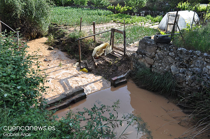 El  arroyo del “Corzo”, a su paso por Priego, se ha visto saturado por la crecida de su caudal y las aguas han anegado tierras colindantes. Junto a la lluvia, la maleza acumulada en el cauce ha sido detonante en esta riada. No hay que lamentar daños personales pero sí materiales.