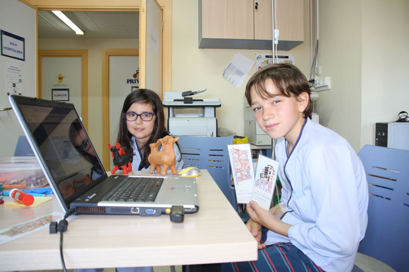 Durante las clases, además de trabajar para que los alumnos en edad escolar entre los 3 y los 16 años que permanecen ingresados en el Hospital no pierdan su ritmo de estudio, los profesores les han propuesto distintas actividades ingeniosas y originales.