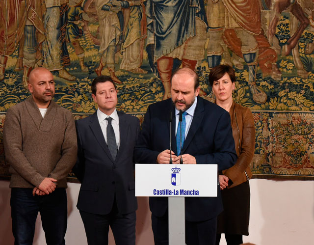 Los presupuestos de Castilla-La Mancha para este año ascenderán a un total de 8.420 millones de euros, 215 millones de euros más que en 2015, lo que supone un incremento del 2,6 por ciento. Así lo ha avanzado el vicepresidente del Gobierno regional, José Luis Martínez Guijarro, en una rueda de prensa junto al presidente regional, Emiliano García-Page; el consejero de Hacienda y Administraciones Públicas, Juan Alfonso Ruiz Molina; el secretario regional de Podemos, José García Molina; y la portavoz del Grupo Parlamentario Socialista, Blanca Fernández.