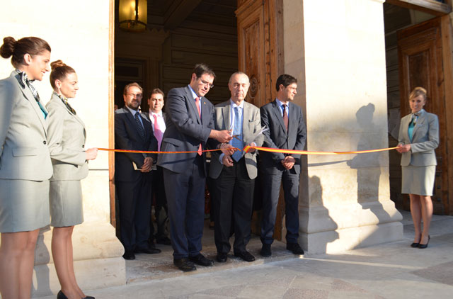 Tras el pregón, Luis Alberto de Cuenca ha sido el encargado de cortar la cinta inaugural y ha recorrido, acompañado por las distintas autoridades, las casetas instaladas en los jardines del Palacio Provincial.
