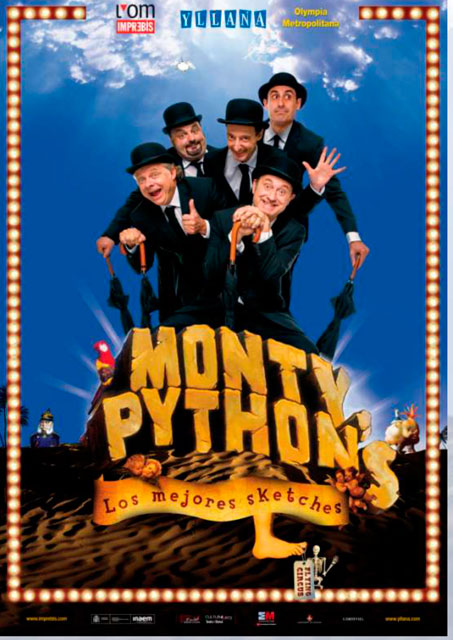 L'Om Imprebís e Yllana se unen para presentar nuevamente MONTY PYTHON, los mejores sketches. Monty Python son los representantes y maestros del humor absurdo, surrealista e ingenioso – un grupo que llegó a estar prohibido en nuestro país y que sorprendió a todos con sus series de TV y películas como La Vida de Brian o El Sentido de la Vida, entre otras, y que ha marcado el humor y la manera de hacer de muchas de las compañías teatrales y cómicos de nuestro país. Una ocasión única para disfrutar de lo mejor de Monty Python en versión original española y sin subtítulos.
