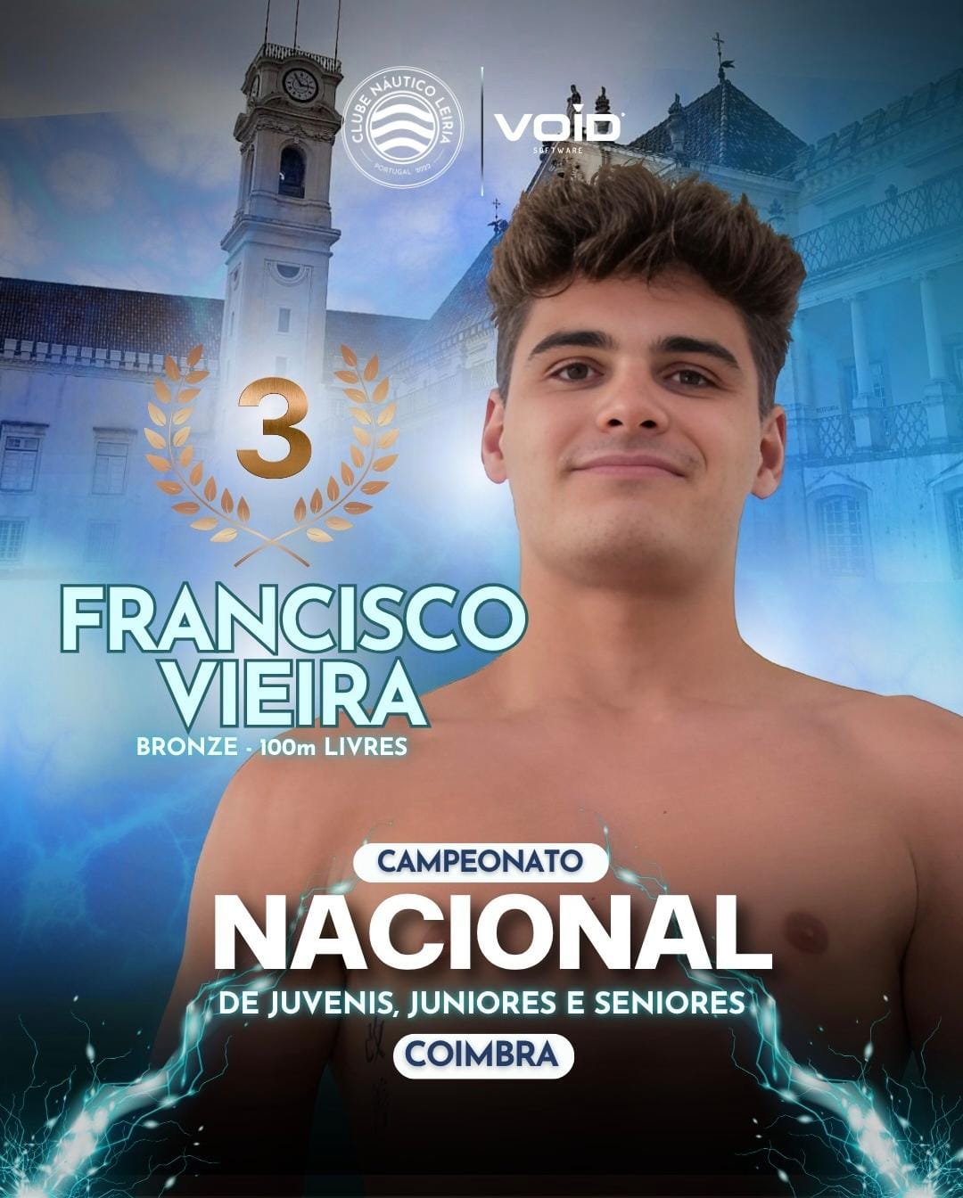 Francisco Vieira, tercer clasificado absoluto en el Campeonato de Portugal en 100 mariposa y 100 libres.