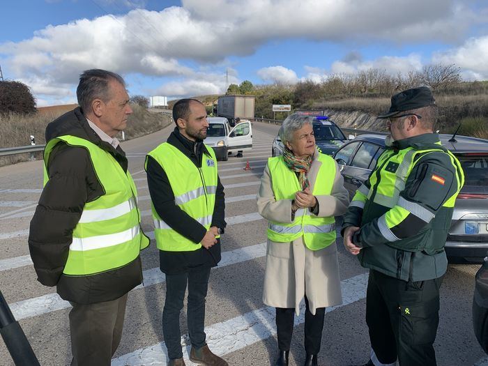 La subdelegada del Gobierno en Cuenca, M.ª Luz Fernández, visitó este lunes uno de los controles preventivos instalados por la Guardia Civil de Tráfico en la salida de la CM-2110, acompañada por el jefe provincial de Tráfico, Diego Cerezo, el capitán del Subsector de Tráfico de la Guardia Civil, Juan Carlos Alonso, y agentes de la Policía Local. La capital se ha sumado así a la campaña de manera activa.