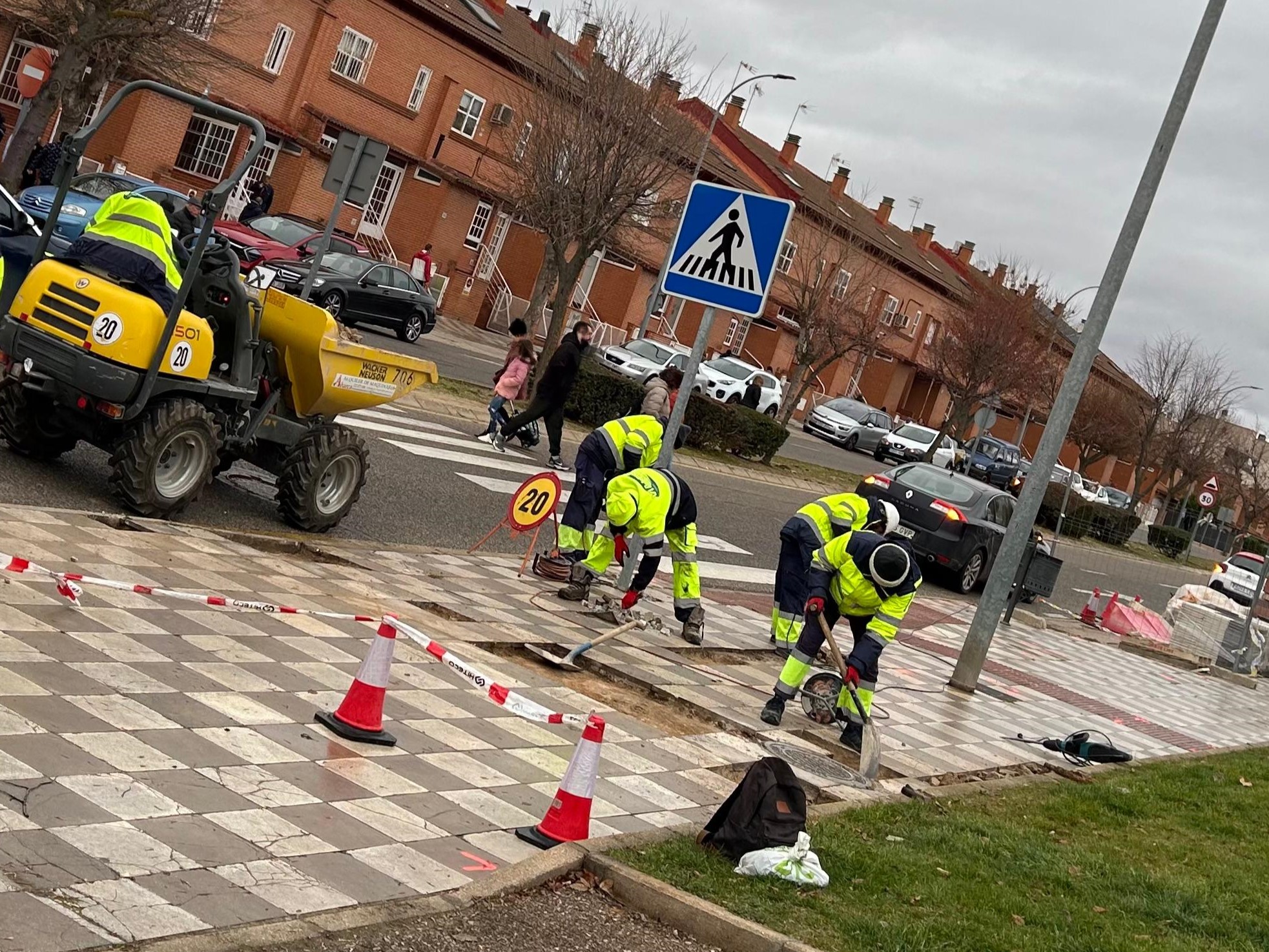 Trabajadores de Viales y Obras Públicas SA comienzan las actuaciones del nuevo Plan de Mantenimiento Urbano en la avenida del Mediterráneo, incluyendo reparación de acerados y bacheado de calzadas.