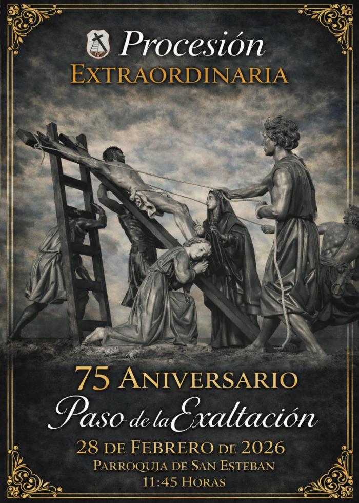 La Venerable Hermandad del Stmo. Cristo del Perdón – Paso de la Exaltación conmemorará su 75º aniversario el próximo 28 de febrero con una misa en la iglesia de San Esteban y una procesión extraordinaria que recorrerá el centro de Cuenca, invitando a participar a todas las hermandades y a la ciudadanía.