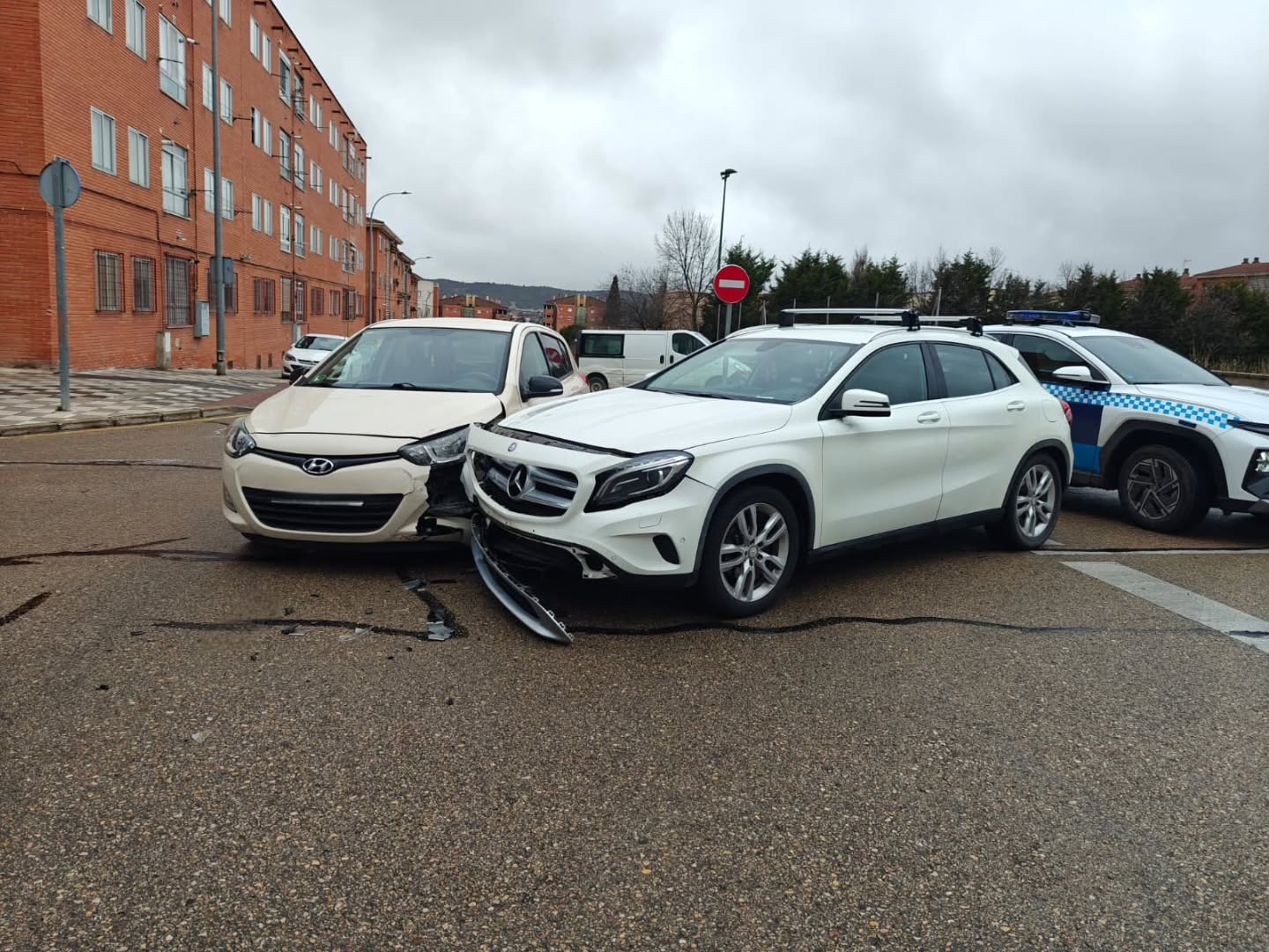 Dos vehículos se vieron implicados en una colisión sin heridos registrada en la tarde de ayer en la intersección de las calles Río Turia y Río Fresneda, en un cruce regulado por señal de STOP.