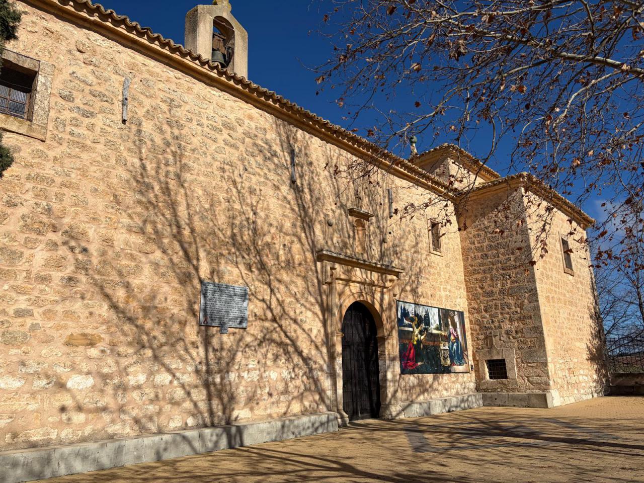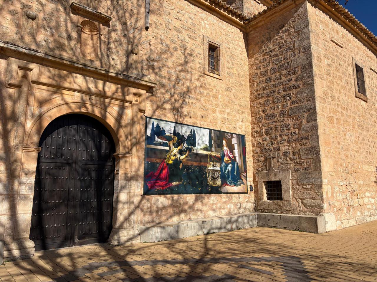 El arte aparece sin avisar en Villar de Cañas. Al doblar una esquina, junto a la iglesia o en una calle tranquila, el visitante se encuentra con reproducciones en gran formato de algunas de las obras más icónicas de Leonardo da Vinci, integradas de forma natural en el paisaje cotidiano del pueblo.