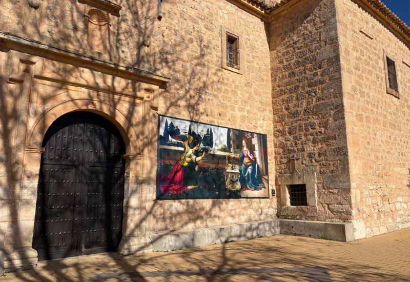 El recorrido adopta el formato de free tour guiado y atraviesa distintos enclaves del municipio. El punto de partida es La Anunciación, ubicada en la Ermita de la Virgen de la Cabeza, un edificio del siglo XVI que actúa como umbral simbólico del itinerario. A partir de ahí, el visitante descubre escenas universalmente reconocibles como La Última Cena, junto a la Iglesia de la Asunción, o La Mona Lisa, que irrumpe de manera inesperada en la calle Mediodía, integrada en el entorno urbano sin solemnidad impostada y con toda su fuerza evocadora.