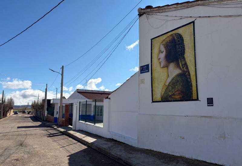 Una reproducción de una obra de Leonardo da Vinci integrada en una calle de Villar de Cañas, dentro de la ruta “Senderos de Arte e Inclusión”, que transforma el municipio en un museo al aire libre.