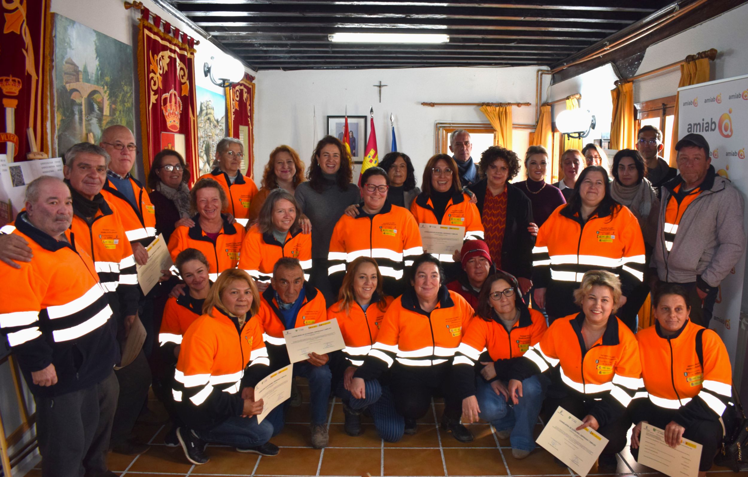 El acto ha contado con la participación de la alcaldesa de Mira, Miriam Lava, así como de la directora general de Formación Profesional, Marta Roldán; la delegada provincial de Economía, Empresas y Empleo, Arancha Poveda; el delegado provincial de Reto Demográfico, Virgilio Antón; y la delegada de AMIAB en Cuenca, Paula Urango, entidad encargada de impartir la formación.