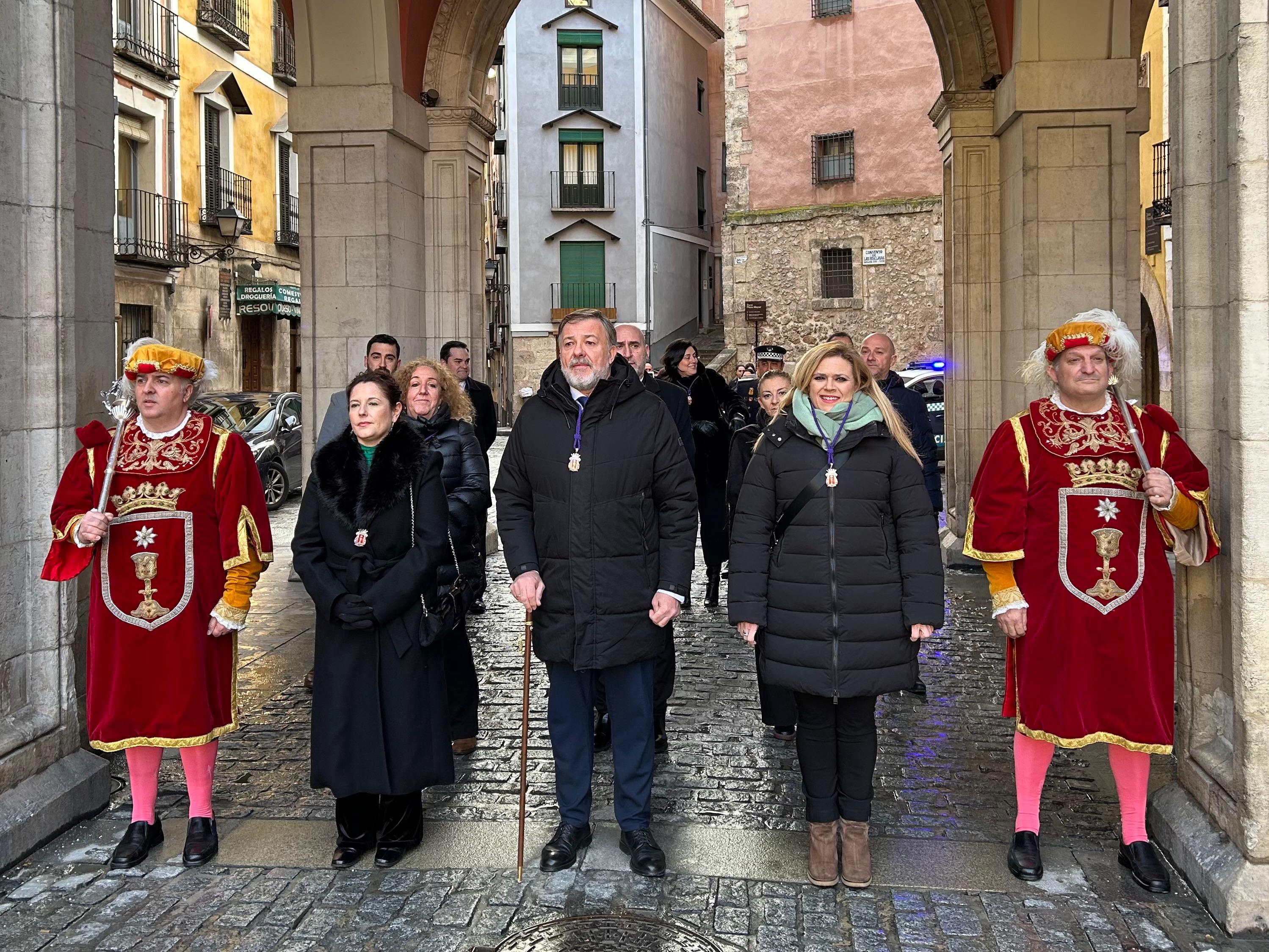 Como es tradición, la misa ha estado precedida por el recorrido institucional desde los Arcos del Ayuntamiento hasta la Catedral, trayecto que se ha repetido a la finalización de la eucaristía. Durante el desfile, la Corporación ha estado acompañada por los maceros municipales y por la Banda de Música de Cuenca, que ha puesto el acompañamiento musical a la celebración.