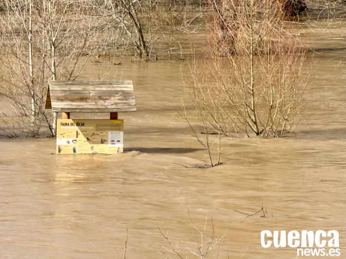 El Ayuntamiento de Cuenca ha informado de que el río Júcar a su paso por la capital está en nivel rojo desde la 1:00 horas de este sábado, con un caudal de 246,95 metros cúbicos por segundo, por lo que ha solicitado a la ciudadanía que no se acerque a las proximidades de la ribera del río.