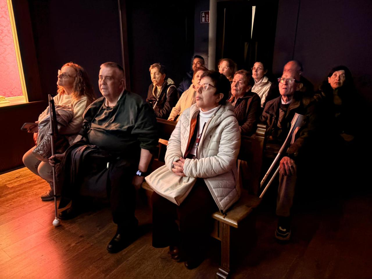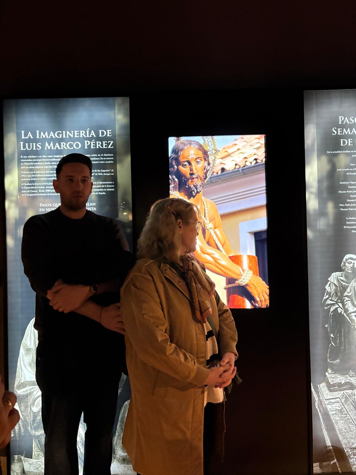 Durante el recorrido, los participantes pudieron conocer los diferentes espacios del museo utilizando distintos recursos sensoriales, especialmente a través del oído y del tacto. Los audios instalados en la mayoría de las salas facilitaron la comprensión de los contenidos, mientras que algunos elementos táctiles permitieron explorar diferentes piezas y detalles del patrimonio de la Semana Santa.