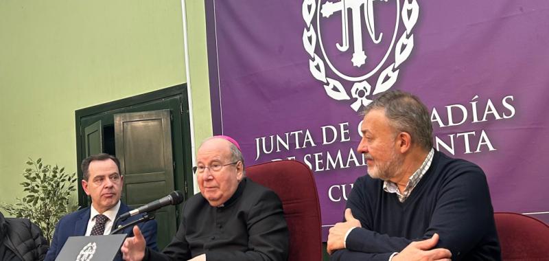 El obispo de Cuenca, monseñor José María Yanguas, cerró el acto agradeciendo su designación como pregonero y valorando la evolución positiva de la Semana Santa en las últimas décadas, destacando hitos como el Museo, la formación de las hermandades y la creciente implicación de toda la comunidad nazarena.