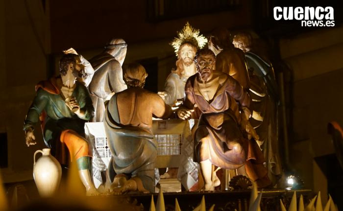 Ya en la noche, a las 22:00 horas, se producirá uno de los momentos clave con la salida de la Santa Cena desde la Catedral, que encabezará la bajada del cortejo. A ella se unirán también los pasos procedentes de San Pedro, completando una de las procesiones más largas y complejas de la Semana Santa de Cuenca.