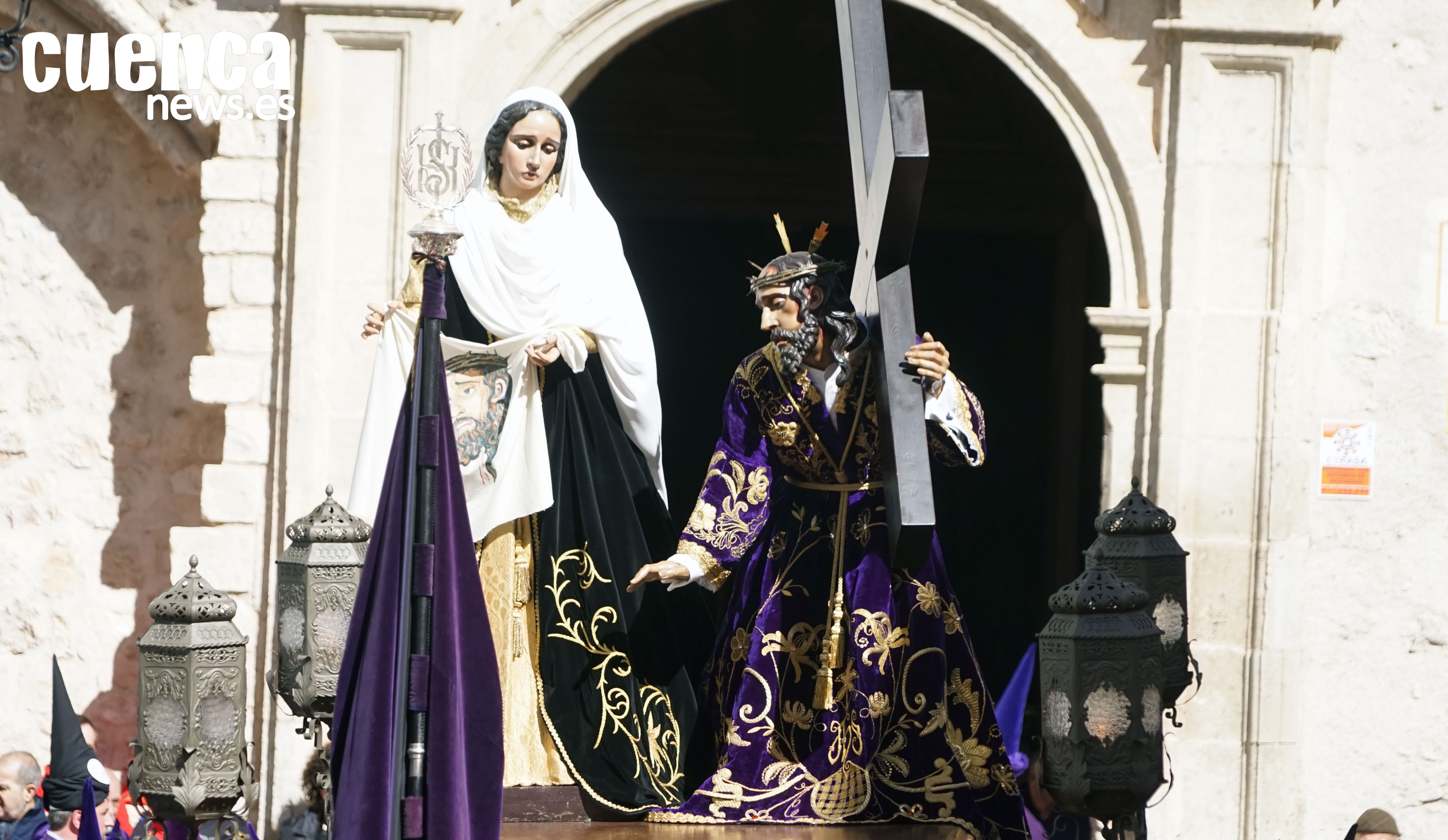 Aún de noche, el cortejo comenzará a recorrer las calles del Casco Antiguo encabezado por la hermandad de Nuestro Padre Jesús Nazareno de El Salvador, con el paso del Señor ayudado por el Cirineo, una de las imágenes más representativas de la Semana Santa conquense. Junto a ella desfilará también el misterio de La Caída, configurando uno de los tramos más intensos del desfile.
