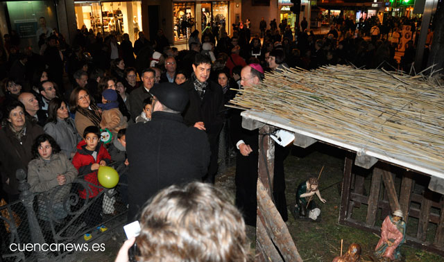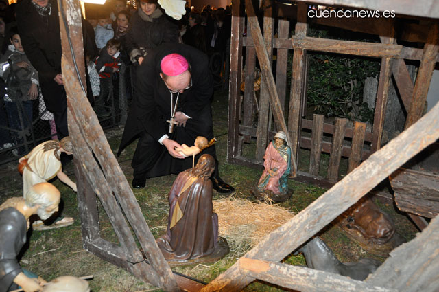 El Belén se ha dado por inaugurado cuando la figura del Niño Jesús ha sido colocada en el pesebre por unos escolares y el obispo de Cuenca ha pronunciado unas palabras de oración.
