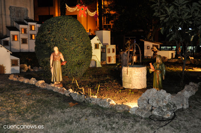 El Belén de la Plaza de la Hispanidad quedó inaugurado en la noche del viernes. El obispo de Cuenca, José María Yanguas, fue el protagonista del acto y con el gesto de colocar al niño en su pesebre daba por inaugurado el Belén. Junto al obispo de la Diócesis también ha participado el alcalde de Cuenca, Juan Ávila.