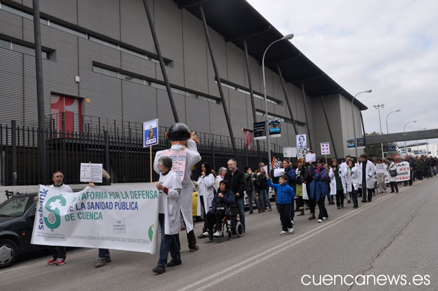 La manifestación de Cuenca ha arrancado a mediodía desde el hospital Virgen de la Luz, donde el grito más escuchado es el de “la Sanidad pública no se vende, se defiende”, un lema que acompaña a los convocantes de la marcha, además los manifestantes también pidieron la dimisión del Consejero de Sanidad de la región, José Ignacio Echániz y del gerente del Hospital Virgen de la Luz de Cuenca, Rodolfo Antuña, por los fuertes recortes que esta sufriendo la sanidad en la región y sobre todo en el centro hospitalario de Cuenca.